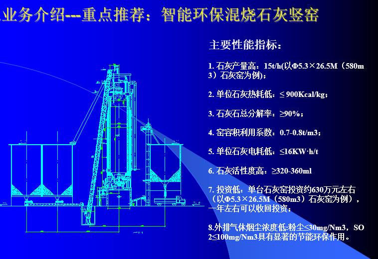 1. 石灰產量高:15t/h(以Φ5.3×26.5M(580m3)石灰窯為例);